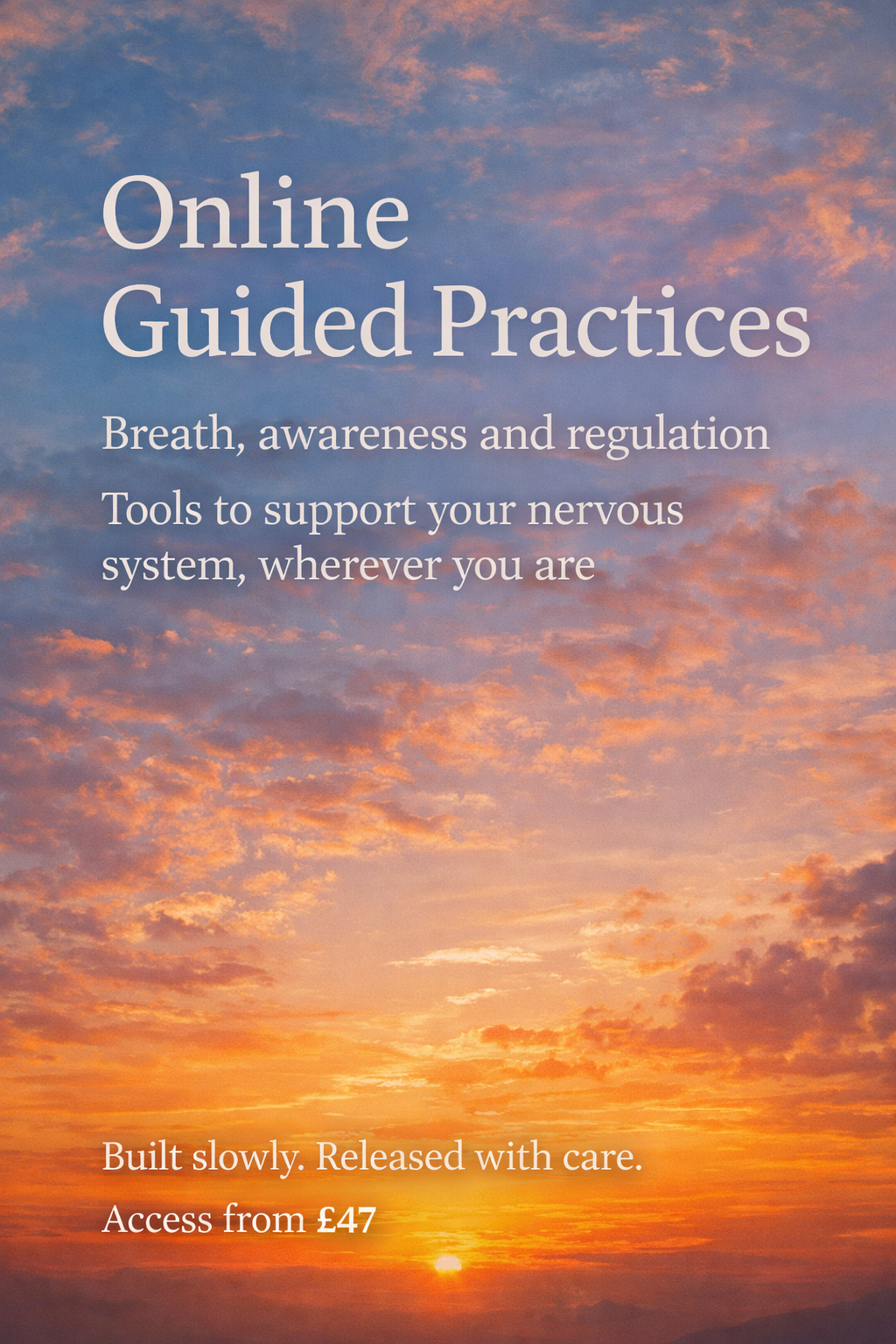 Each Online Guided Breath Journey is around 30 minutes or longer, allowing time to settle and integrate.Access